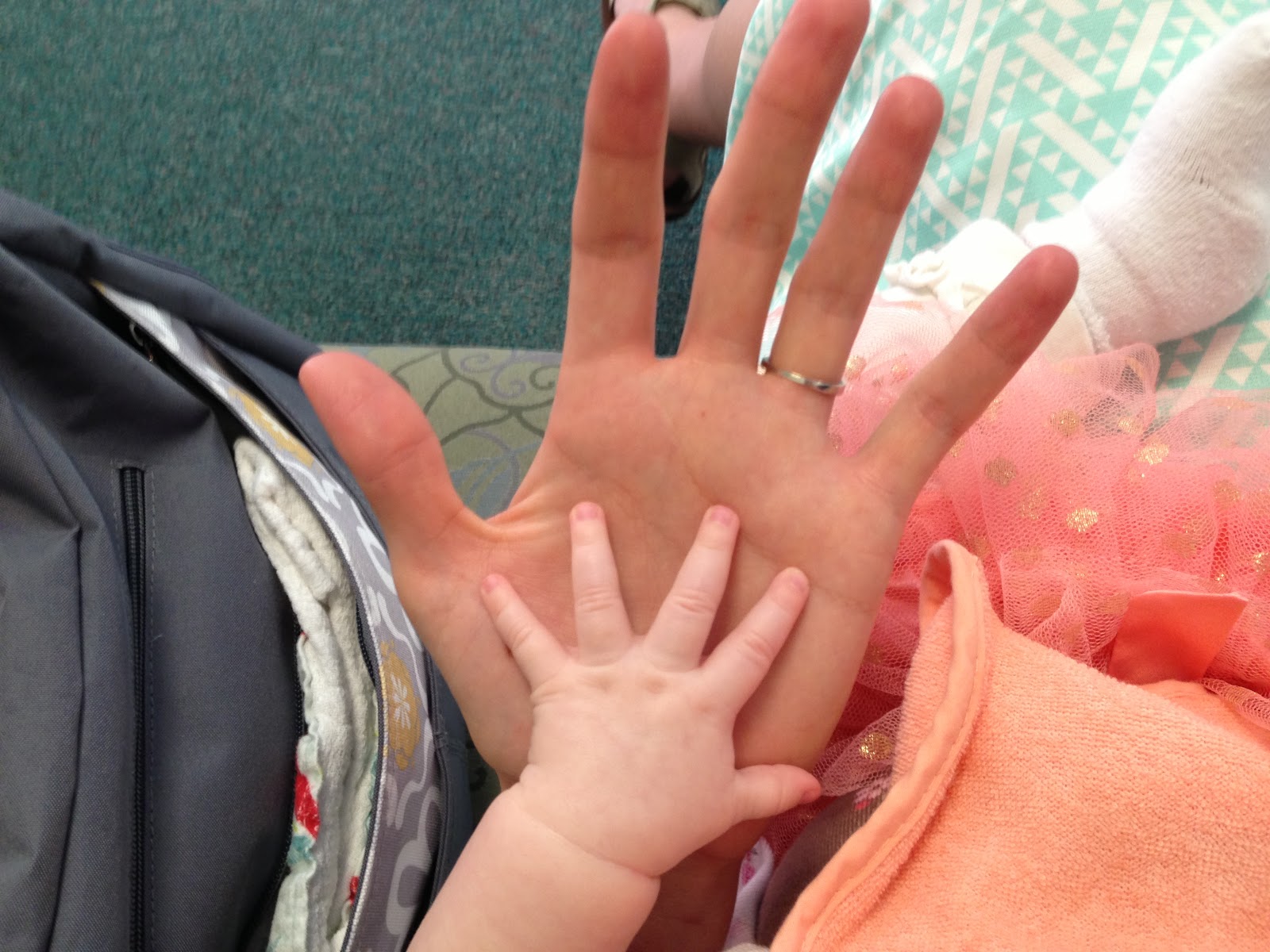 - She talks/coos more for mommy but daddy can usually get the biggest smiles